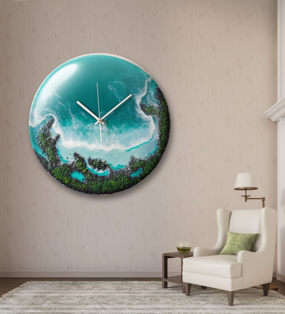 “Add a modern twist to your home decor with our stunning resin clocks, where art meets functionality. Hand-poured with vibrant resin, each clock features intricate, swirling designs or calming ocean-inspired patterns, making every piece one-of-a-kind. The glossy resin surface creates a beautiful, polished look that highlights the rich colors and textures, turning timekeeping into a work of art. These clocks are crafted with silent, precise movements, ensuring a peaceful environment while enhancing any room’s aesthetic. Perfect for those who appreciate unique, handmade decor, our resin clocks blend elegance and creativity, making them a standout piece in any home or office.”