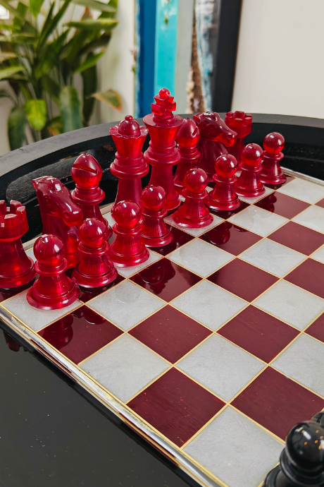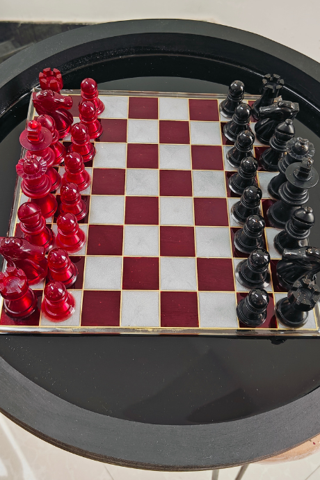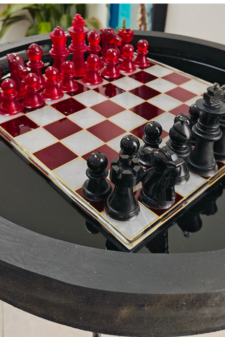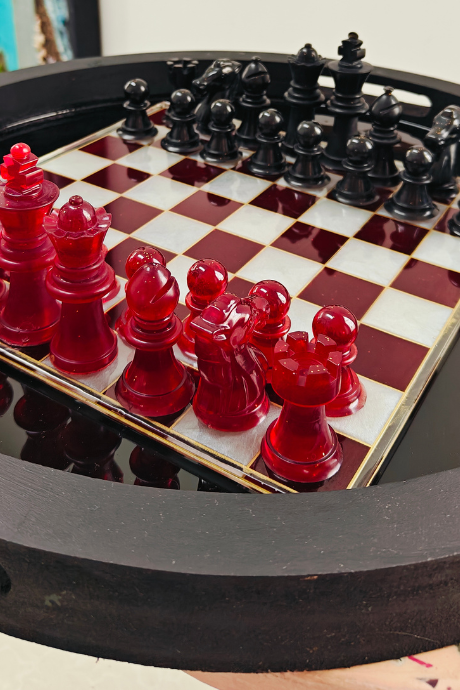 “Elevate your chess experience with our stunning resin chess trays, designed for both functionality and style. Each tray is meticulously handcrafted, featuring a glossy finish that showcases vibrant colors and intricate patterns, reminiscent of the dynamic movements on a chessboard. The unique resin designs enhance the aesthetic appeal, making these trays perfect for both game enthusiasts and art lovers. These versatile trays are ideal for organizing your chess pieces or serving snacks and drinks during game nights. With durable construction and a smooth surface, they provide a luxurious feel while ensuring easy maintenance. Add a touch of sophistication to your chess games or home decor with our one-of-a-kind resin chess trays, making every match an elegant affair.”